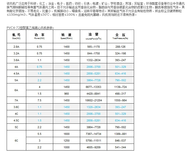 PVC4-72型聚氯乙烯離心風機