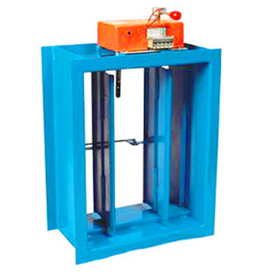 安裝在中央空調風道系統中,工作原理是極易熔合金的溫度控制,利用重力作用和彈簧機構的作用關閉閥門。當火災發生時,火焰入侵風道,高溫使閥門上的易熔合金熔解,或使記憶合金產生形變使閥門自動關閉,用于風道與防火分區貫穿的場合。